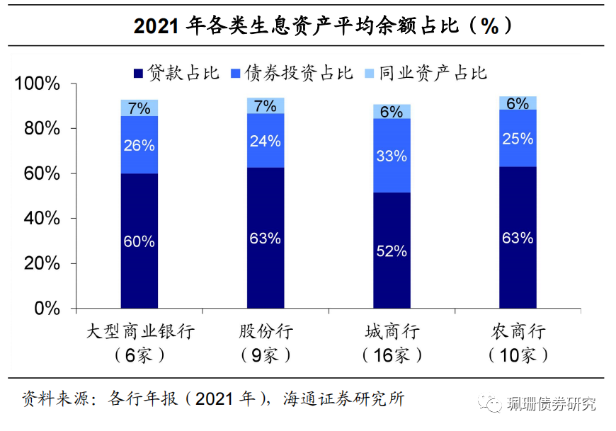 值得注意的是,上市银行贷款占总生息资产比例自2017年起连续五年增长;债券投资占比在经历了17H1至21H1的连续下降后,小幅回升0.1个百分点;同业资产占比连续两年下降。