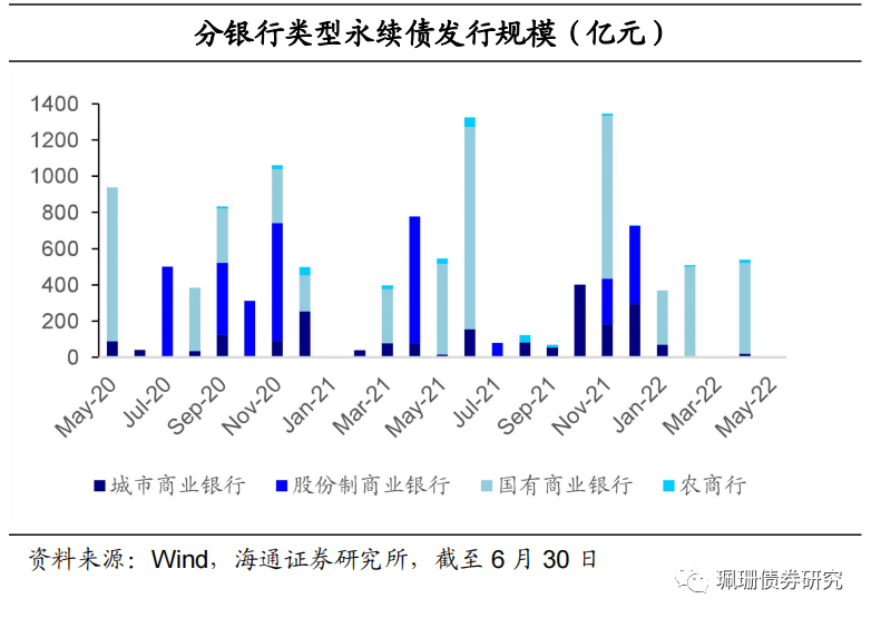 二级资本债和永续债成交额双双抬升。6月后半月,商业银行次级债券成交额合计4281.48亿元。其中,二级资本债成交额为2849.79亿元,较前一统计周期环比增加621.95亿元;永续债成交额为1431.69亿元,较前一统计周期环比增加261.54亿元。从银行类型来看,除农商行永续债小幅下降1.8亿元外,其余均有明显上升;国有商业银行二级资本债上升幅度最大,为501.04亿元。