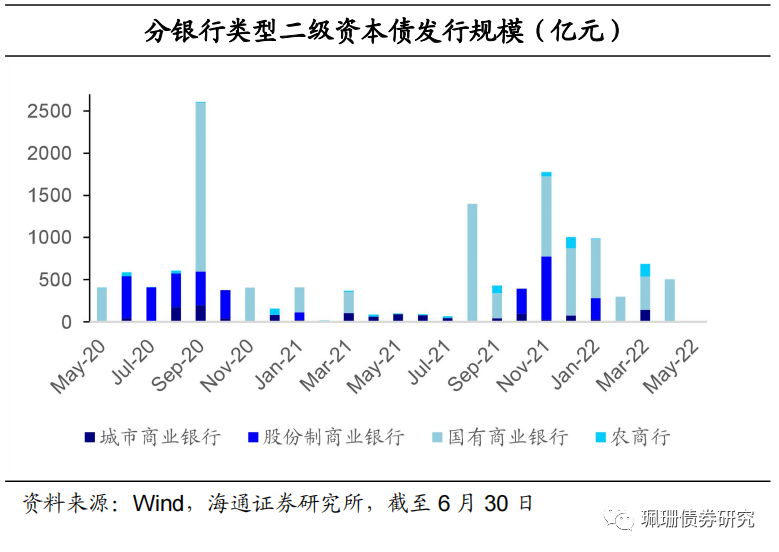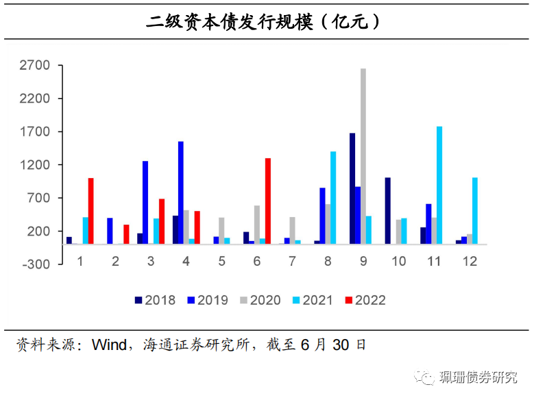 6月后半月(6/16-6/30,下同),商业银行次级债券共发行11只,规模合计为714亿元,较上一统计周期(6/1-6/15,下同)环比增加19亿元。其中,1只城商行永续债规模为40亿元,10只二级资本债规模合计为674亿元,截至6月30日,今年共发行商业银行次级债券5371.5亿元。