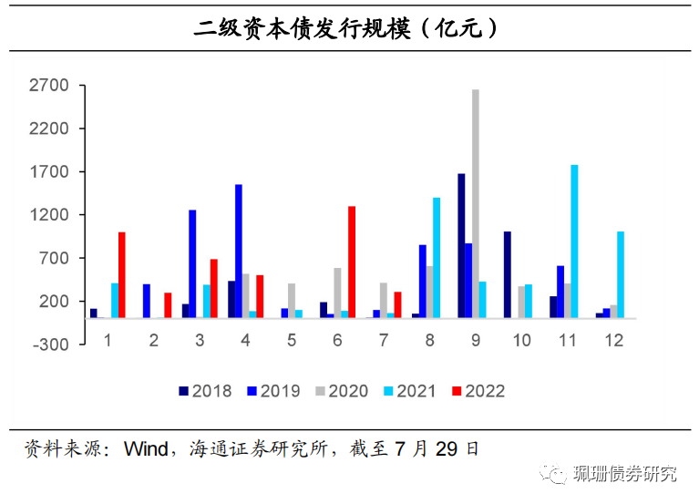 7月后半月(7/16-7/29,下同),商业银行次级债券共发行10只,规模合计为121.65亿元,较上一统计周期(7/1-7/15,下同)环比减少144.35亿元。其中,1只城商行永续债规模为10亿元,9只城农商行二级资本债规模合计为111.65亿元,截至7月29日,今年共发行商业银行次级债券5765亿元。