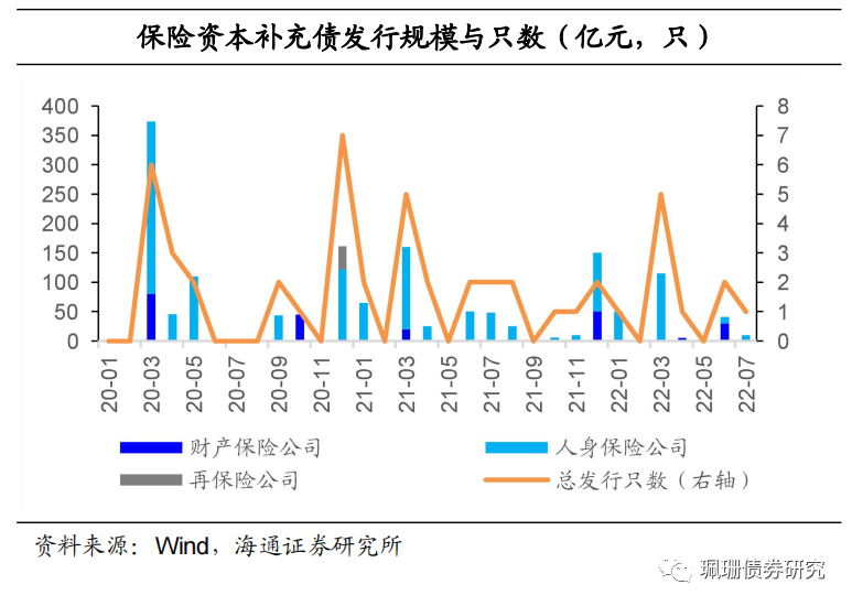 保险资本补充债换手率下降,券商次级债换手率小幅上升。截至7月29日,7月保险资本补充债和券商次级债换手率(换手率=7月成交额/月初存量)分别为5.01%、1.37%,较6月分别下行3.2pcts、上行0.4pcts。与二级资本债对比来看,保险资本补充债与券商次级债换手率分别较二级资本债低11.1pcts,14.8pcts。成交额方面,7月保险资本补充债和券商次级债成交额分别为142.41亿元、73.28亿元,分别较6月环比下降87亿元、上升20亿元。