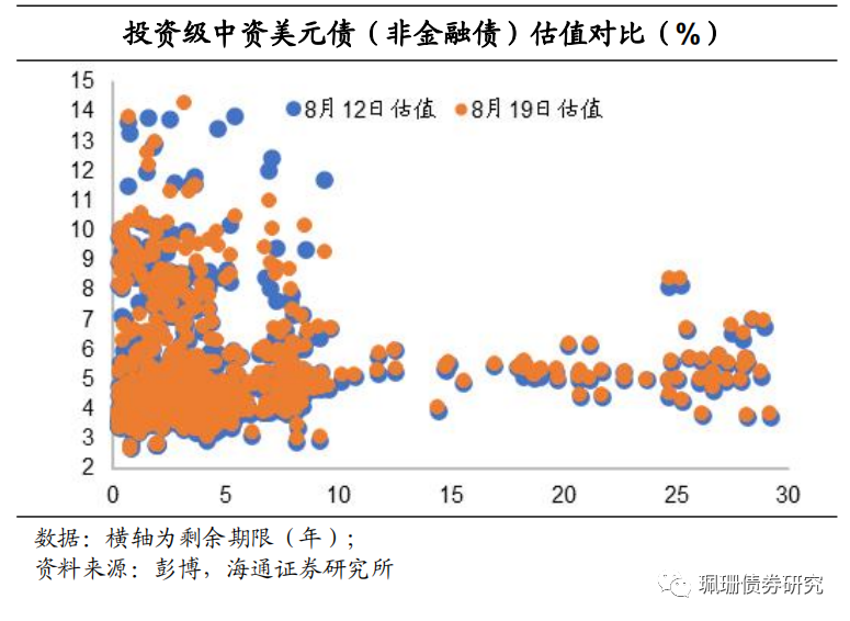 中资美元债:投资级收益率平均上行,投机级价格平均下跌。投资级中资美元债收益率平均上行4.0BP,投机级中资美元债价格平均上涨0.24%。