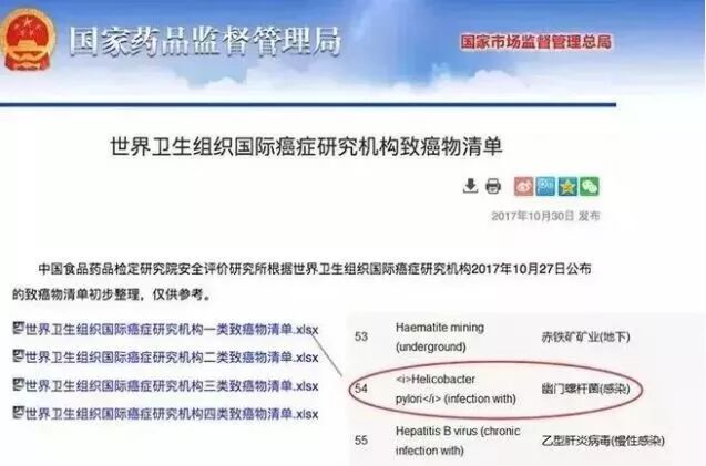 在2018年《全球致癌物排行榜》中,幽门螺杆菌名列第54位!