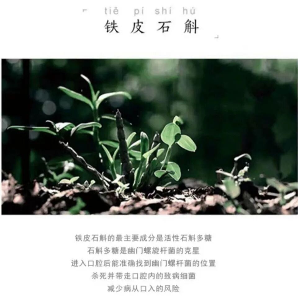 现代医学发现,铁皮石斛中的活性石斛多糖具有强大的抑菌效应,能够强效灭杀幽门螺旋杆菌。