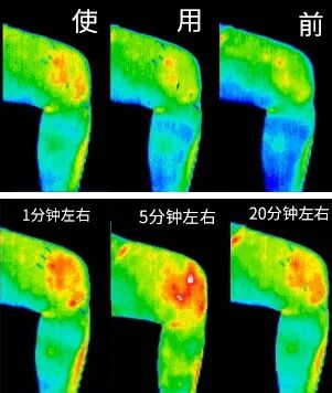 在热感仪器下,关节从最开始疼痛,到涂上御恒堂马栗膏1分钟开始发热渗透,5分钟后基本被肌肤吸收,20分钟后还在起作用!
