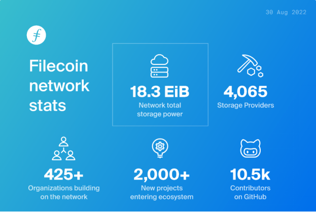 网络总算力18.35EB(较上次增加了0.3EIB);生态应用超2000个(较上次增加了100个);代码贡献者超1.05万个(较上次增加了0个);建设组织超425家(较上次增加了0家);存储提供商4065个。