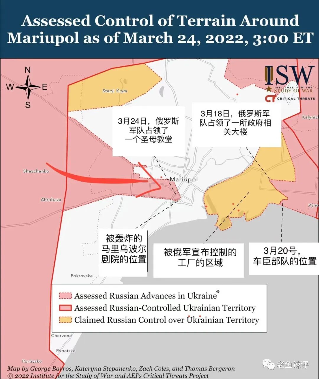然而,这次对乌克兰的“军事行动”开始后,俄军在绍伊古将军的亲自指挥下......战果怎么说呢,我还是上图吧。当然了,作为国防部长,除了指挥打仗之外,绍伊古也作了很多协调工作,综合各家媒体的报道:2月25日,绍伊古会见了亚美尼亚国防部长;2月27日,被普京召见;3月1日,与土耳其国防部长通话;3月4日,与联合国秘书长通话;3月8日,再次与土耳其国防部长通话。然而,在3月11日后,国防部长先生就再无任何音信了,至于他到底去哪了?咱也不知道,咱也不敢问。和他一起消失在媒体里的,还有俄罗斯情报部门负责乌克兰工作的谢尔盖.贝赛达和他的助手。据说这哥两已经被软禁起来了。另外,和绍伊古一起坐在桌子另外一头的总参谋长格拉西莫夫和俄情报机关FSB局长波特尼科夫也都有十几天没在媒体上公开露面了。至于战争的进程,因为之前乌克兰农民拖坦克的事说得有点多,今天就讲一下整体局势。从上图可以看出来,俄军进入乌克兰一个月之后,基本没有取得任何战略上的成果。尤其是北方,不但没能攻进首都基辅,反而被乌克兰消灭了大量的坦克和装甲车,那里的俄军已经开始构筑工事,要转入防守了。昨天,俄军从戈斯托梅尔撤退,80%的伊尔平已经被乌克兰解放。由于俄军的指挥混乱,有视频说:第37独立近卫机动步枪旅指挥官尤里·梅德韦杰夫上校居然被他自己部队的一辆坦克从腿上直接碾过去了。