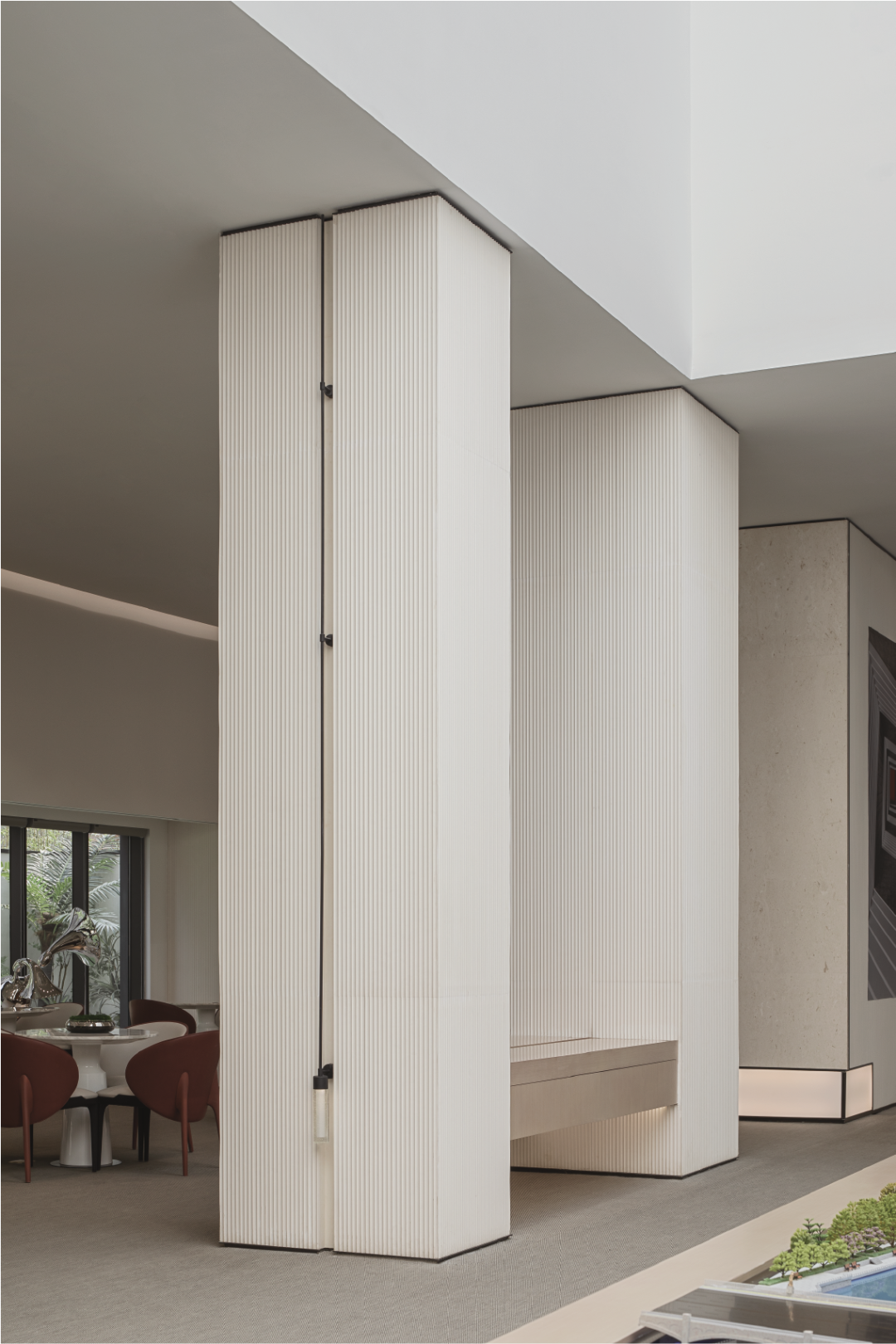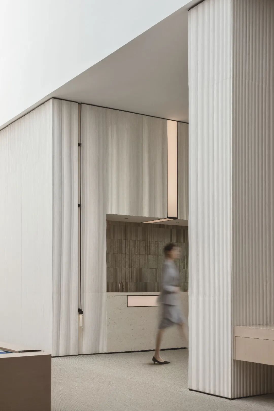 正如在天津中海·和平之门中,如何通过设计给空间的极简下定义?又如何将极简呈现为极致?这些问题对于我们来说,不止限于美学的范围,更是需要在创意概念、材质结构、工艺技法、造价把控等一系列因素的思考中,去输出理想的答案。