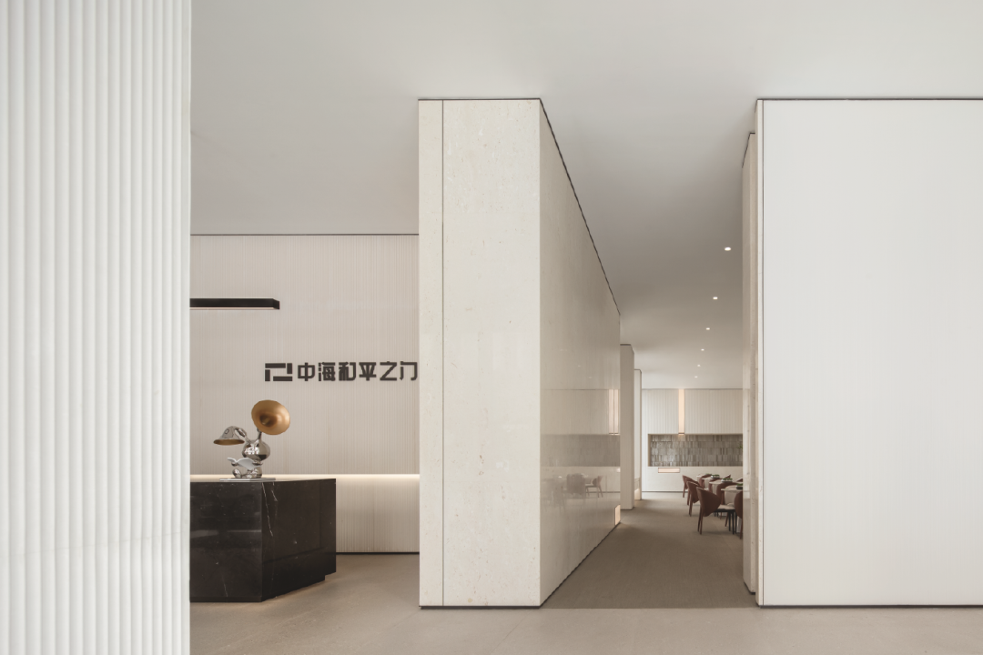 落笔于纯粹而克制的极简主义手法,担纲天津中海·和平之门一案时,一贯坚持“做美学之外的设计”的柘壹设计,突破单一的美学思维定式,以简朴质雅的当代艺术语汇与点线面的构成方式,在一种减法式的营造中,探寻结构、材质、色彩、节奏与体验间的深度联结。“极简不止是一种美学风格,在美学之外,其中蕴含的对技法与工艺的衡量,皆让重点指向于空间的内核,并更趋向于一种系统化的洞见。”