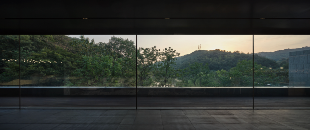 为了更好的让位于自然山水,一至三层多使用灰色的石材、深色的木饰面 等低饱和度材料,让空间变的沉静。卧室区域则选择浅色的木饰面和织物等,传递轻松、自然和温馨的载体,让人一夜好眠。