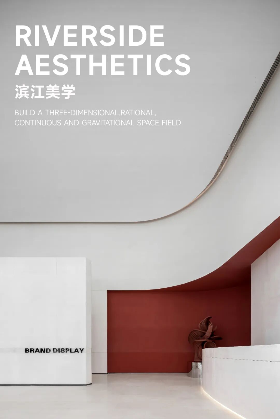 设计汲取城市建筑与滨江美学,将建筑的体块感与几何感融入室内,并以流线造景,于场域内泛起滨江涟漪,构建立体、连续且富有引力的空间场域。