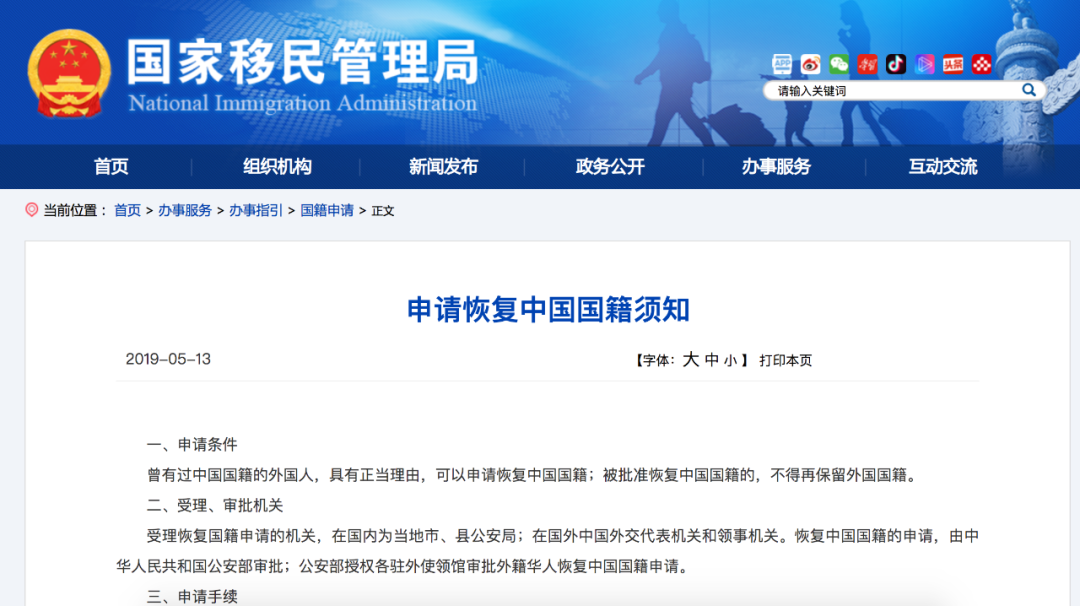 但如果曾经是中国公民,那么回家就很容易!