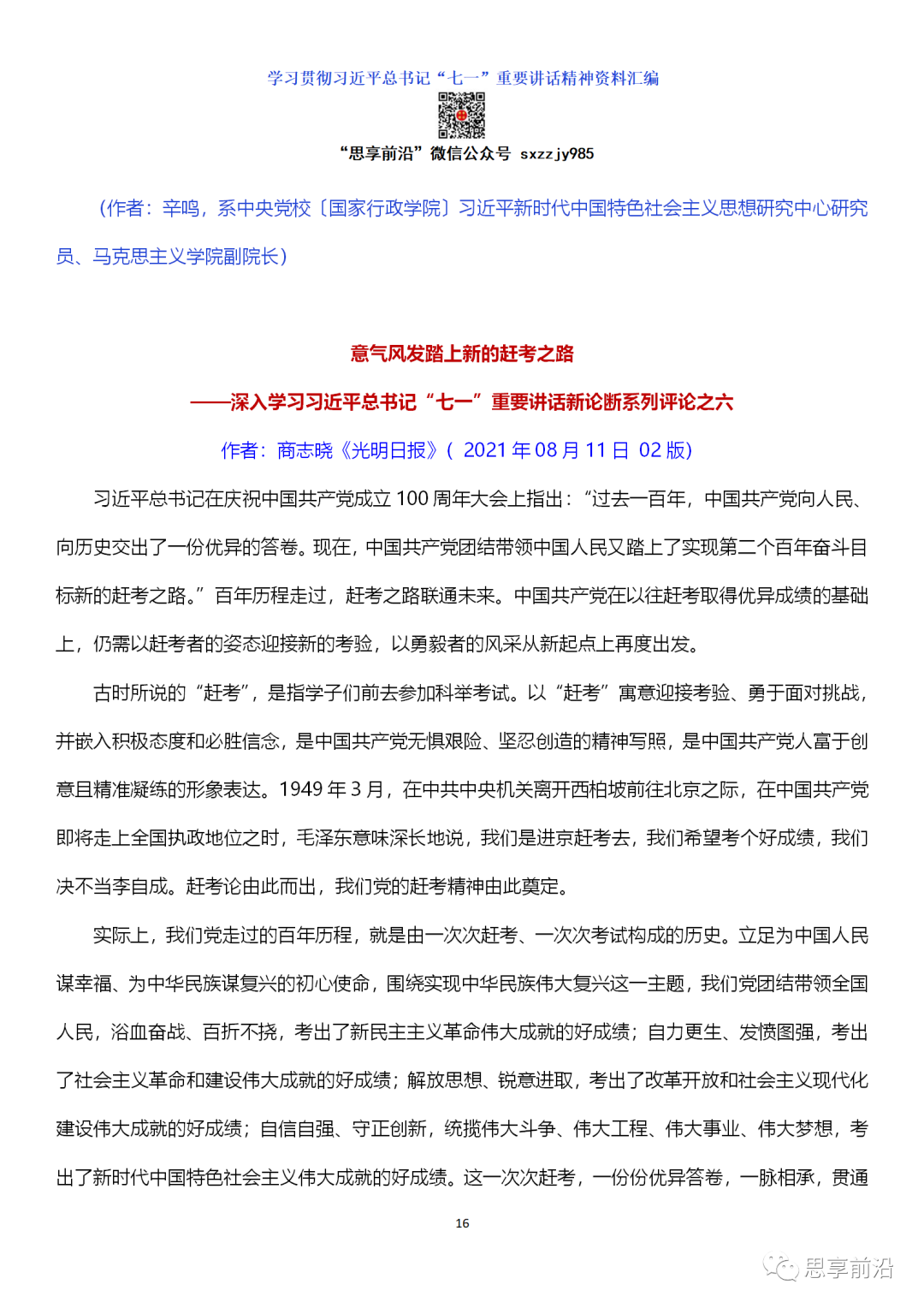 为深刻理解和把握习近平总书记系列新论断,《光明日报》从2021年8月4日至8月17日推出了10篇“深入学习习近平总书记‘七一’重要讲话新论断系列评论”,从多方面多角度析事明理,解疑释惑,集中阐发新论断的历史背景、科学内涵和深远意义。