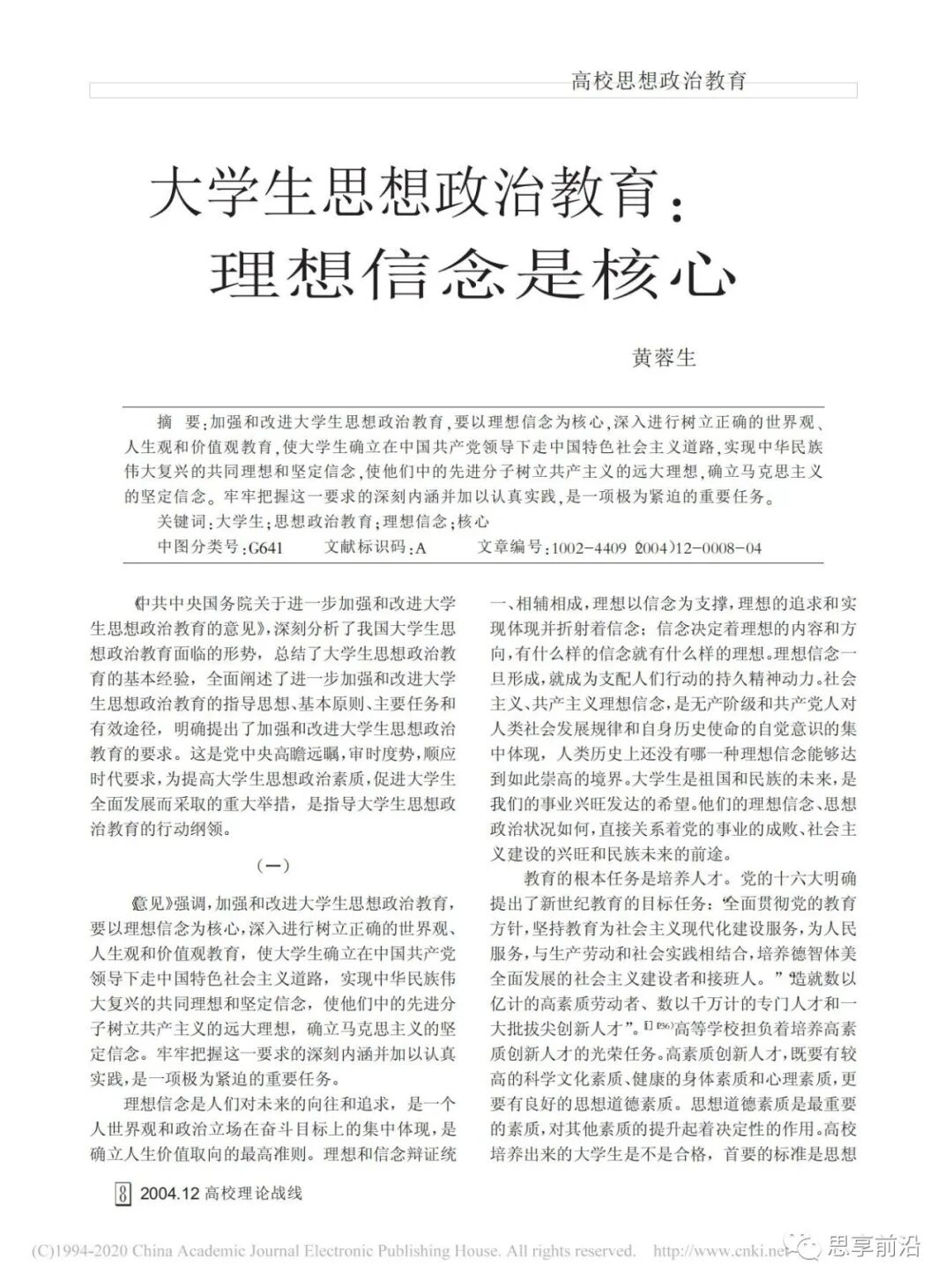 大学生思想政治教育:理想信念是核心