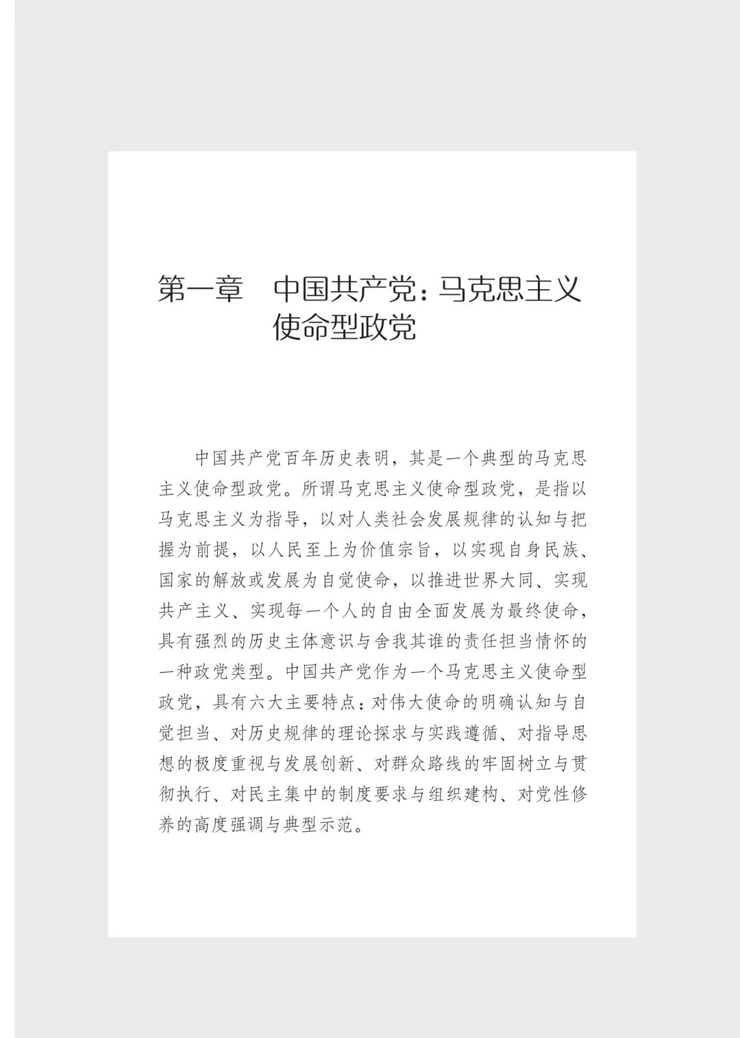 中国共产党基于使命而生、基于使命而在,是一个典型的马克思主义使命型政党。作为马克思主义使命型政党,中国共产党与成员之间存在一种独特的使命型契约,与民众之间存在一种道义性的心理契约。中国共产党作为马克思主义使命型政党具有很强自主性,要求确立坚强有力、具有权威的领导核心。百年历程,中国共产党以强烈的使命意识和卓越的领导能力领导人民成功走出中国式现代化道路,创造了人类文明新形态,引领中华民族一步步走向伟大复兴。