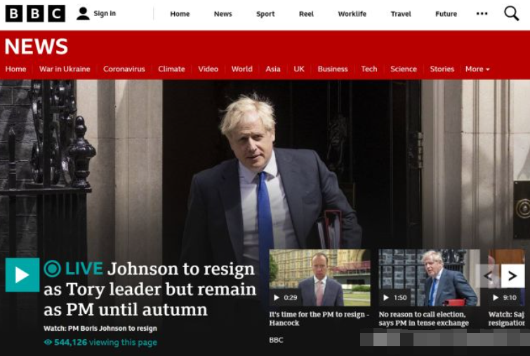 这个声明委实来得有点突然。我十分喜欢这位个性鲜明雷厉风行言出必践的首相,何况他坚定支持战火中的乌克兰。之前6月6日的弹劾他过关了,那么一年内就不会因为弹劾下台,但是这次的辞职可能是受到过大的党内压力导致的,而党内压力又是因为保守党最近过低的民意支持率导致的。约翰逊虽然昨天还在说“我的政府不会因为一系列官员辞职而倒闭”,但今天就不得不投降,直接原因是两天内有30~40位政府官员辞职。为了保守党,他不得不做出牺牲。