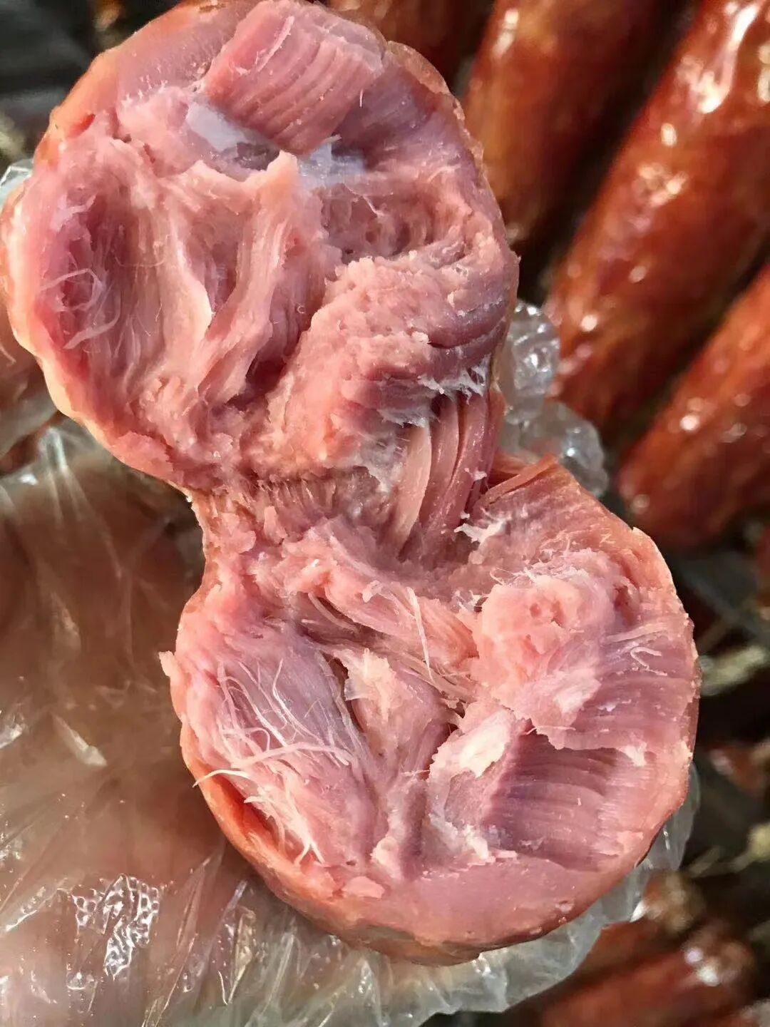 每根老火腿的重量大约要比10根普通香肠还要重!