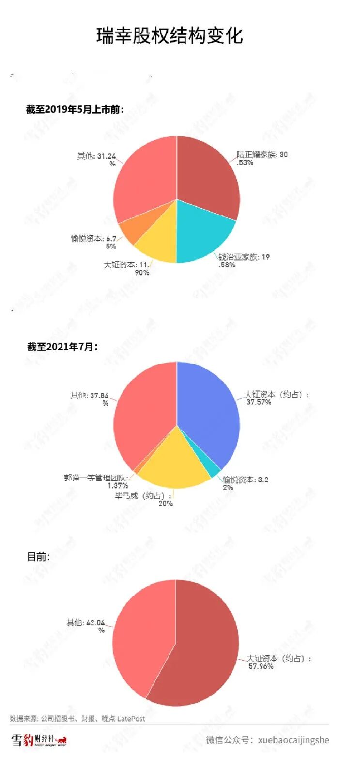1月27日,大钲资本宣布,它牵头的买方财团从瑞幸前管理层陆正耀、钱治亚关联公司收购了总计3.84亿股的A类普通股,获得了50%以上的瑞幸投票权,成为实控人。这意味着陆正耀可能由此正式退出瑞幸股权大战,在此前,在2020年被大钲资本等“踢”出董事会后,陆正耀始终没停止“反攻”。