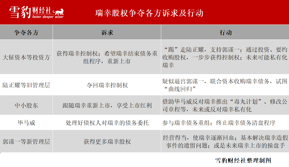 瑞幸尚未重新上市,前高管团队、现高管团队、大股东、债权人、中小股东等各方对股权和瑞幸下一步如何选择的斗争早已白热化。