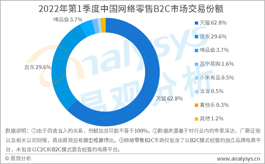 重要原因是,京东在电商赛道占据着相当的市场份额。据易观分析,今年Q1,京东成交总额同比增长18.6%,以29.6%的市场份额位列第二。