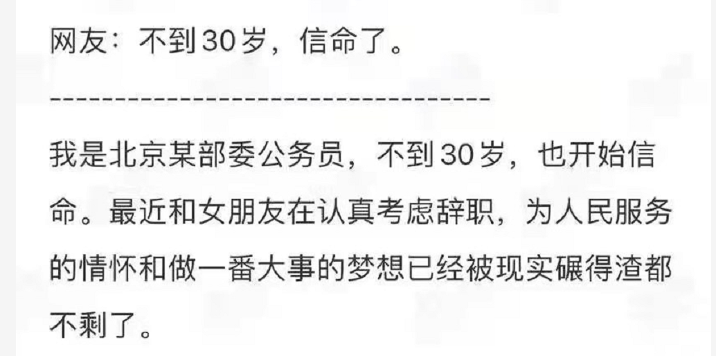 这是其中一个公务员网友的心声,他在部委级机关呆了三年,现在终于还是要离开了。