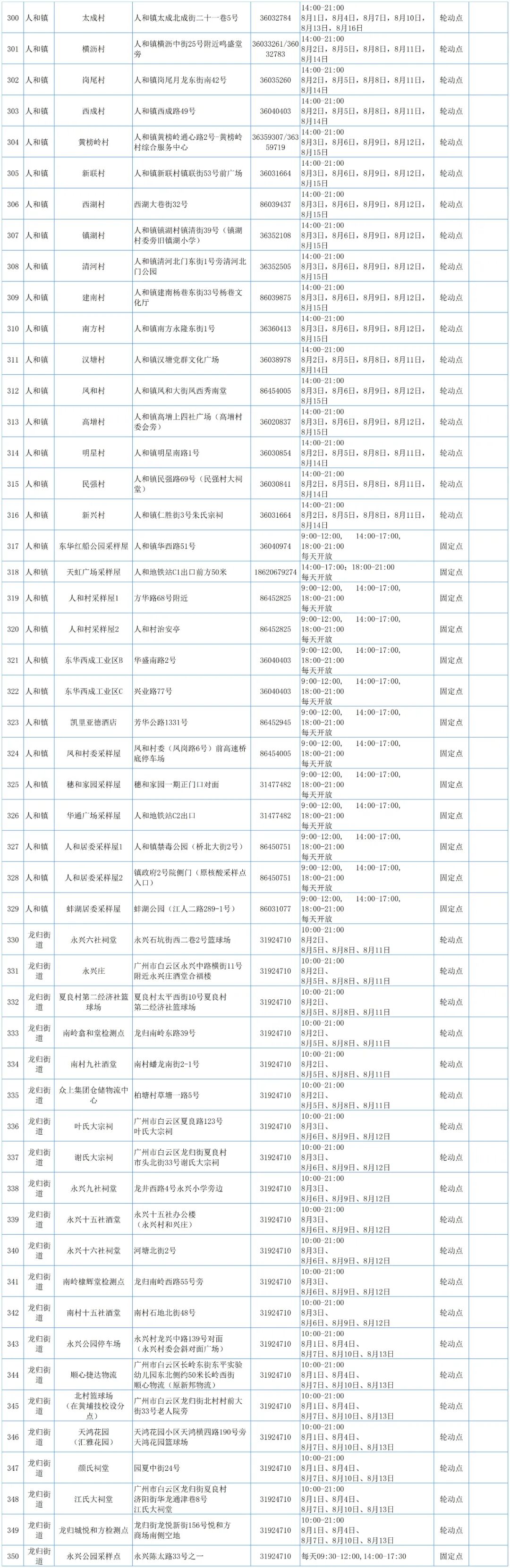 | 东风体育馆北广场 | 花都区风神大道1期10栋 | 每天:08:30-12:00 | 重点行业从业人员 | |