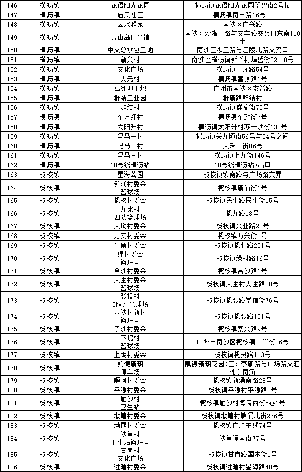 | 广州北站西广场负一层 | 广州市花都区秀全西路负一层 | 机动(随列车时间而定) | 中高风险地区来花人群 | |