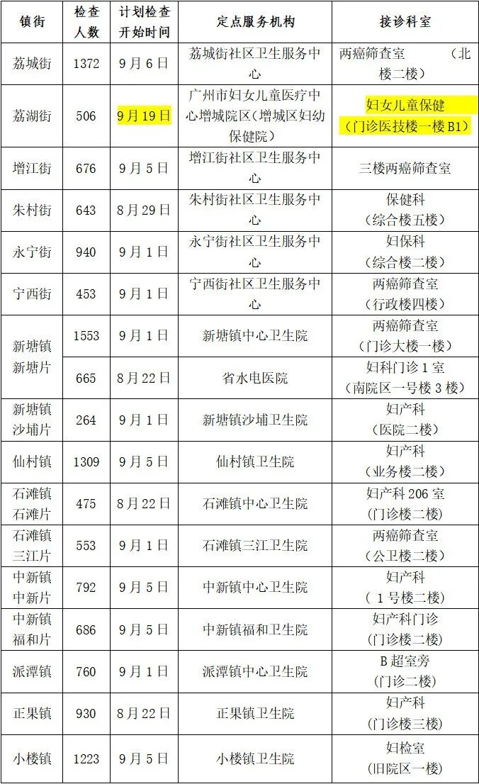 赤坭镇、花东镇、狮岭镇、梯面镇、花山镇、炭步镇的居委(城镇地区)户籍女性前往居住所在镇的卫生院咨询和预约。