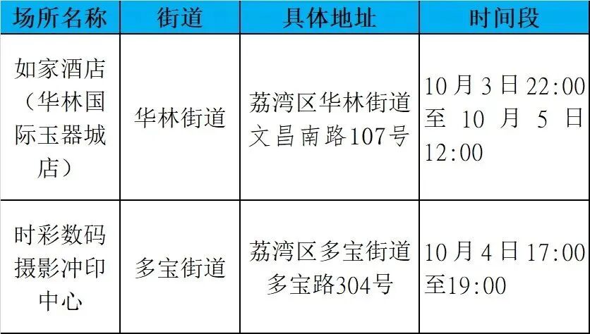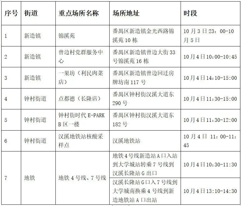 因疫情防控需要,请在相关时段到过以下重点场所的人员,立即向所在社区(村)联系报备,并前往就近的核酸检测点进行核酸检测。