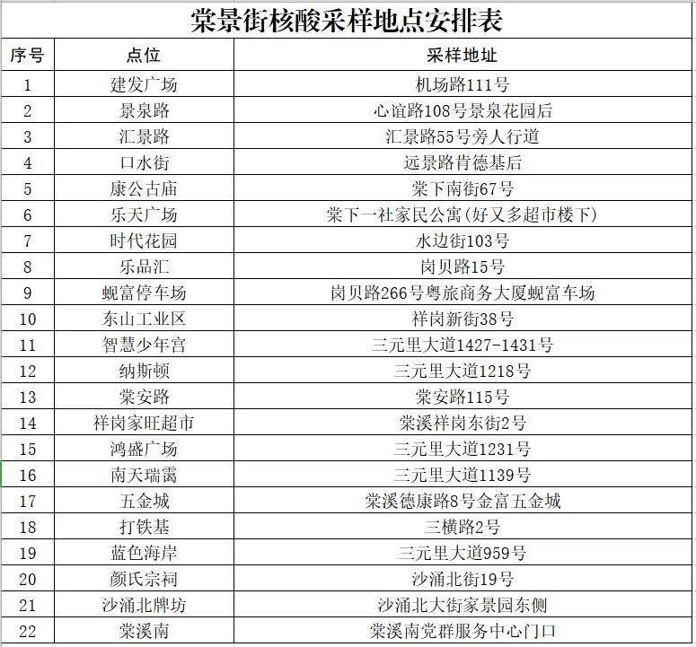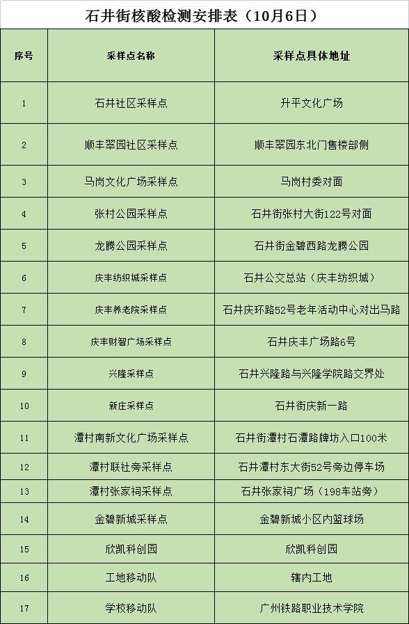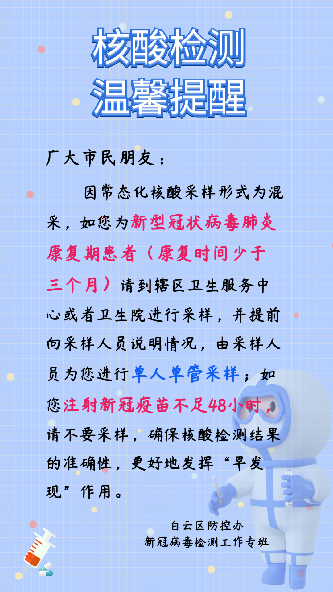 白云区多街道定于10月6日(周四)开展全员核酸检测,现将有关事项通告如下: