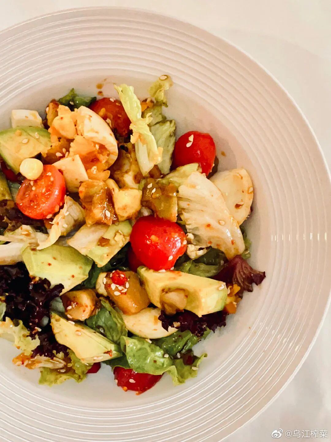 ▲乌江菜谱,榨菜鲜虾牛油果沙拉
