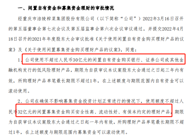 ▲涪陵财报显示,公司账上有33亿存款