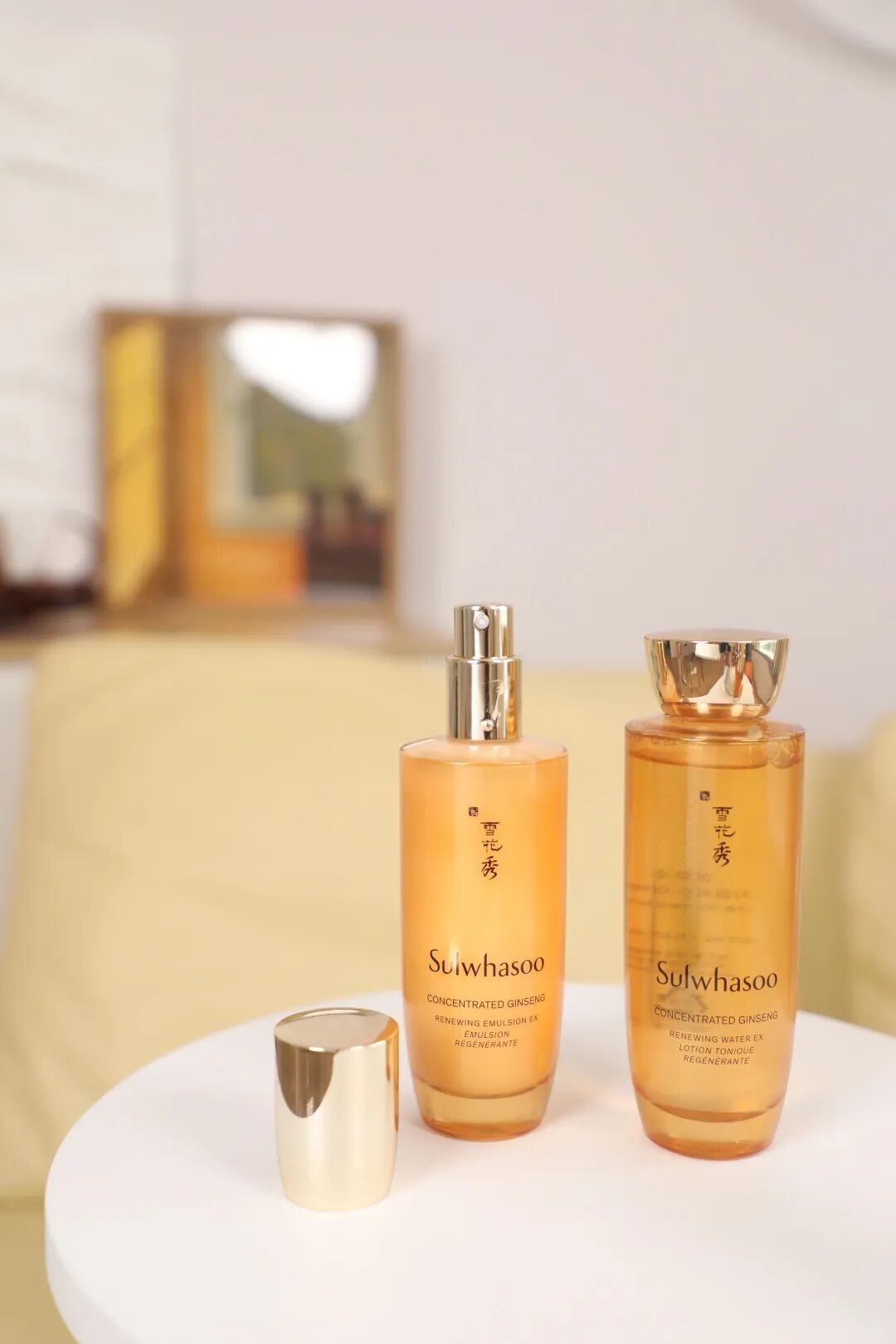 针对水乳的不同特性,雪花秀也给它们各自搭配了其他成分来强化效果。人参水里加入了烟酰胺,既能强化我们脸子的抗氧化能力,又能修护屏障,焕活肌肤~