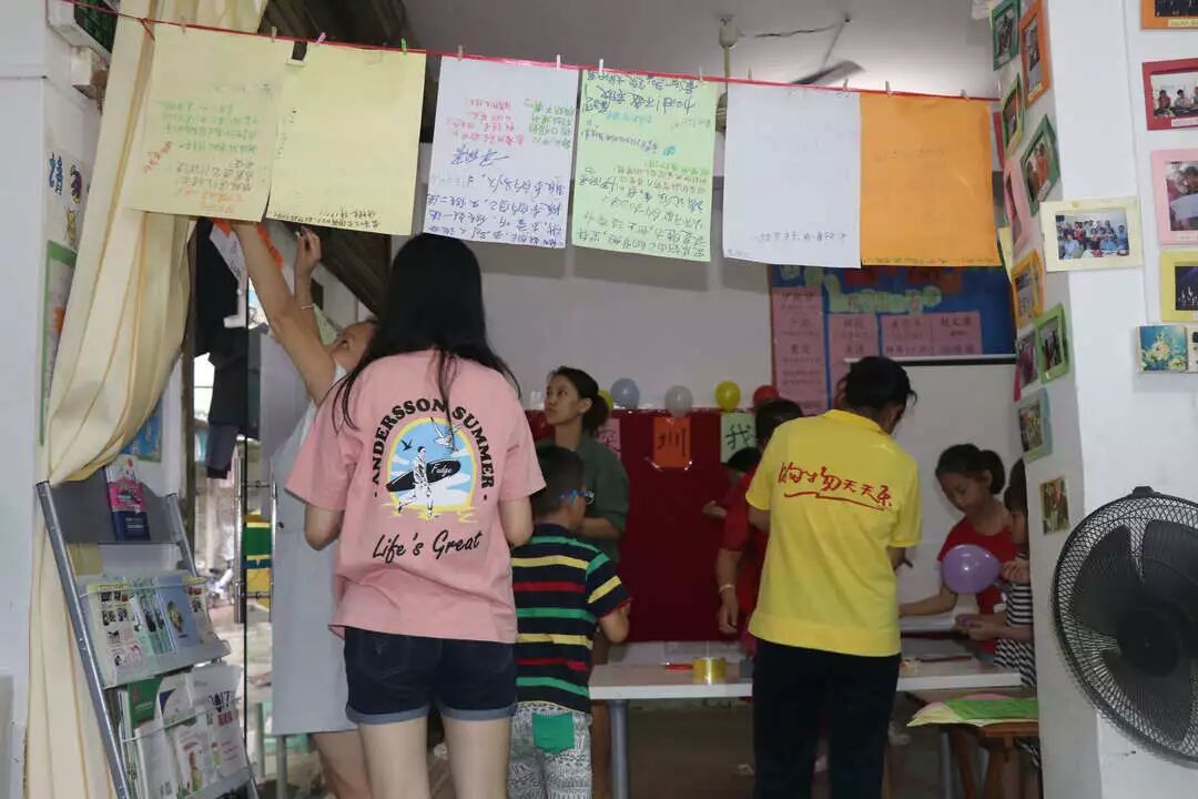 吃过午饭,孩子们便迫不及待地来到了每周上课的教室,开始为毕业典礼做准备:年龄尚小的,兴奋地吹着气球;稍年长的,则细心地勾画裁剪。