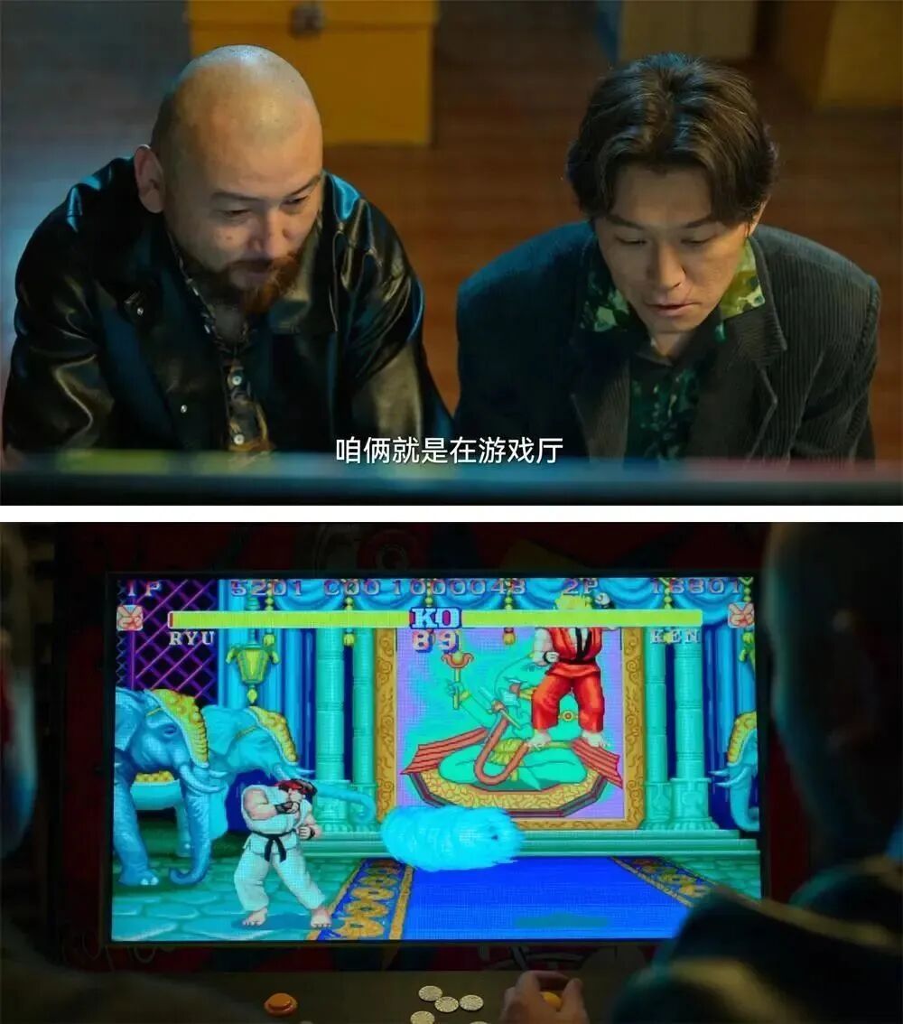这里再次出现了街机厅的画面,唐小虎和光头勇毕竟是从小一块儿长大的,多多少少有些不忍,但上面的命令又不得不执行,于是最后和他玩了一次《街头霸王》。