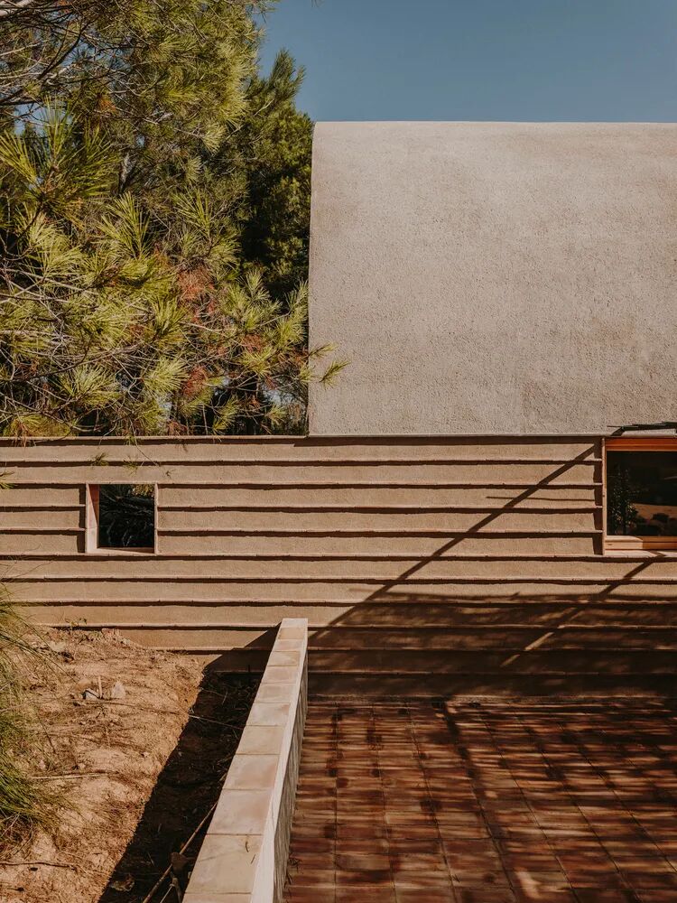 住宅顺应了当地的建造传统,一种混合了混凝土、石头(产自塔尔河)和当地瓷砖的建筑材料被用于墙体建造。瓷砖在比斯巴(La Bisbal)周边有悠久的历史。它不仅被用作建筑材料,还一度活跃于贸易领域,是当地的重要的经济来源。