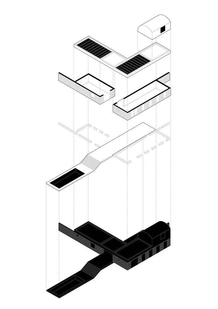 项目使用了产自比斯巴(La Bisbal)的瓷砖和特尔河的石头。海洋,山脉和平原在这里交汇,形成了独特的自然景观。为了让使用者临其境地领略该地的自然地貌,建筑由两个不同的体量组成。这两个体量创造出了三种不同的空间,分别面向不同的景观类型。在展现项目基地周围丰富的自然景观资源的同时,建筑也尽可能地不对周围环境造成干扰,与之和谐相处。