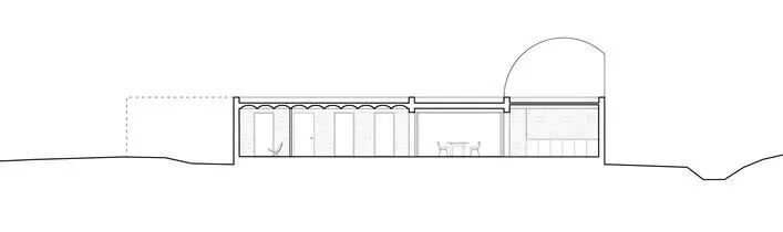 主卧位于建筑物二层,由巨大的加泰罗尼亚式穹顶构成。穹顶的空间形态与沿曲线的挤出的几何形式一致,它的高度由墙体中轴线及墙面共同决定,低于其最大限高。作为整个项目中最私密的空间,只有在这里,参观者仅能向室外投去匆匆一瞥。