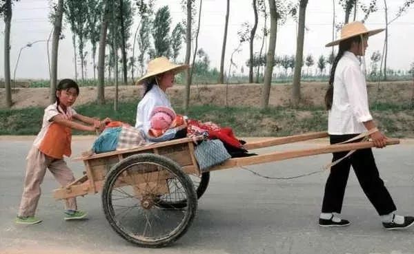 当时没有几个人有自己的小汽车,“凤凰牌”老二八在那时候可是“豪车”啊,要是谁家还有辆摩托,那可真是土豪。也有些地方去城市只能坐这种人工板车,或者牛马车。