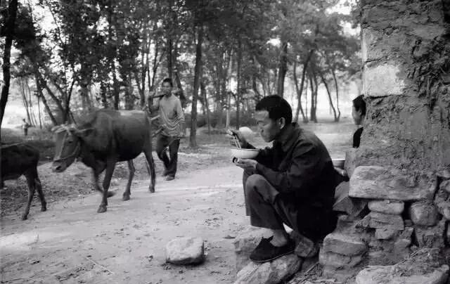 1989年,河南李家集,晒着太阳吃午饭 。