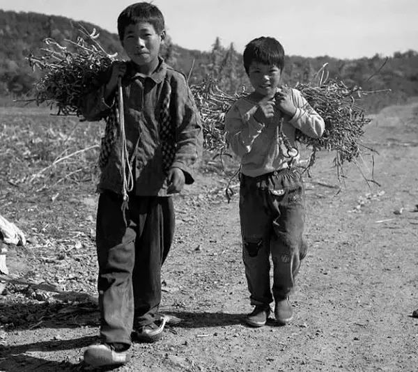 1980年代,农村孩子捡黄豆。
