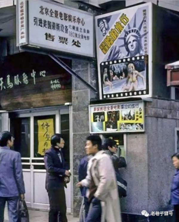 1987年,北京,西方文化进入中国,北京大栅栏的电影院前贴出美国金发美女穿上比坚尼泳衣的电影海报。