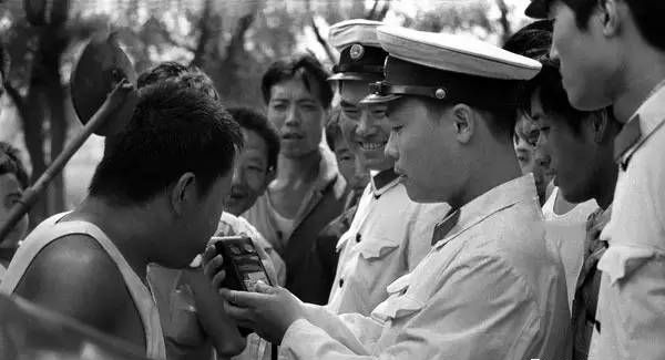 1981年8月4日,北京,在沙河朝宗桥下首次使用酒精检测仪。刘英毅/摄。