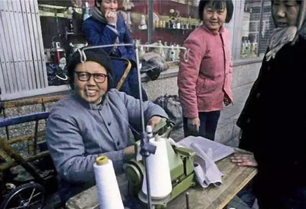 1984,北京某街头出现的个体经营户,一台缝纫机就可以做小生意。