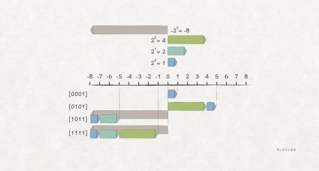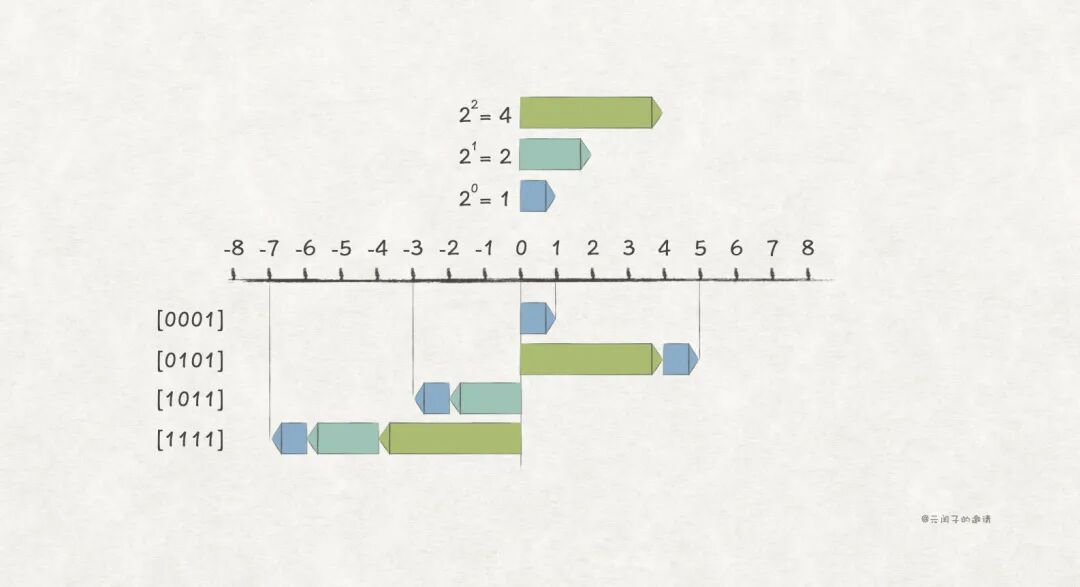 于是,补码编码 被发明,它也是建立在无符号编码的基础上,仍然取最高位为符号位,编码方式是这样: