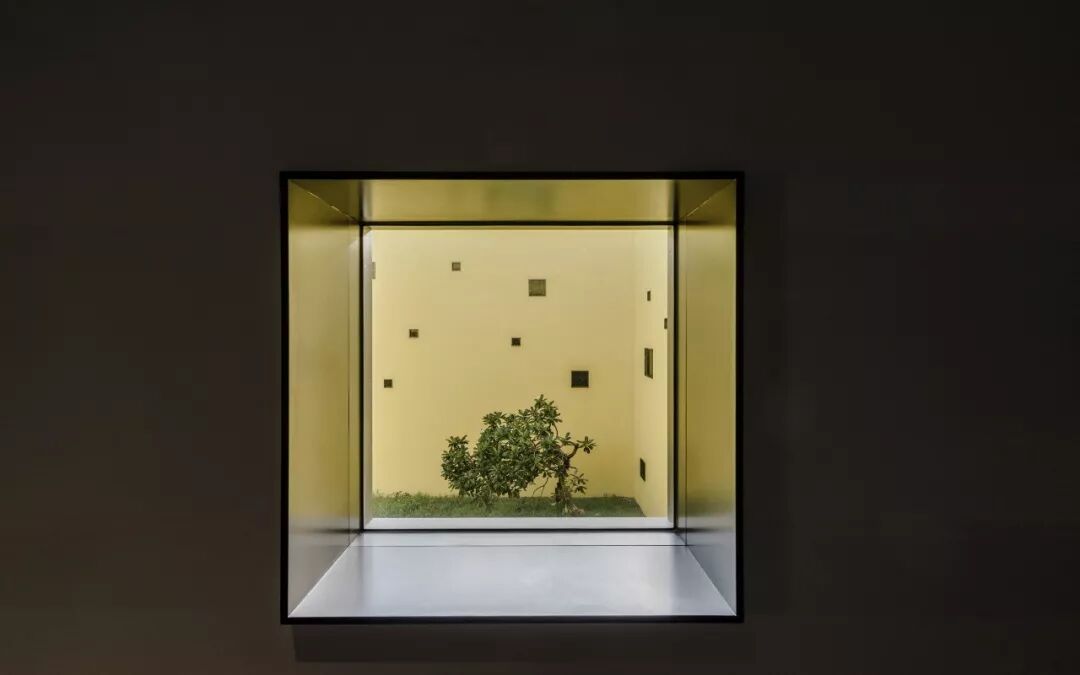 建筑外墙以粗犷火山岩为主,夜里光线隐隐的渗透,对照粗糙的石材质感诉说神秘的诗意。