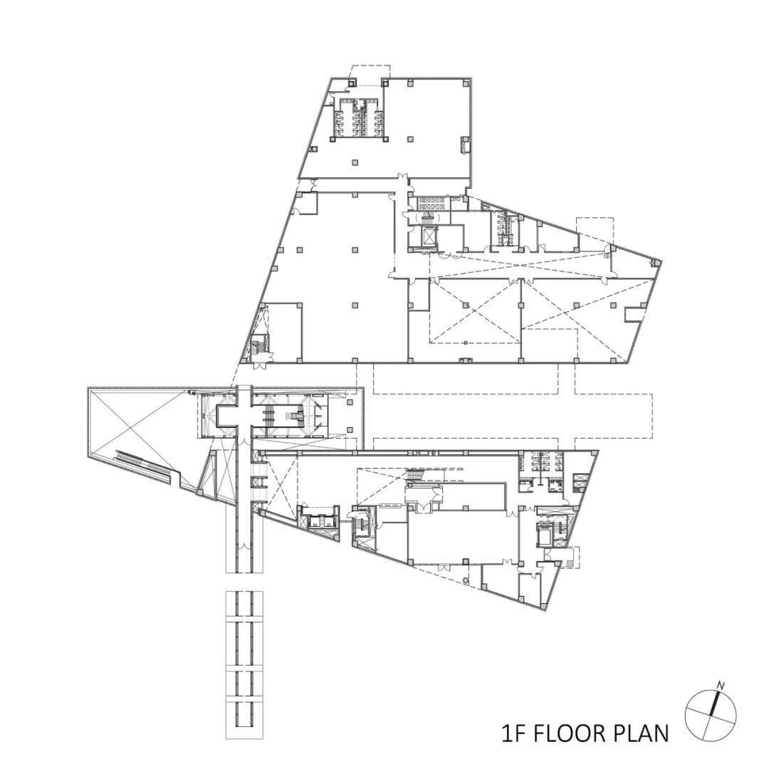 建筑以两组不同几何向度组成:一轴线指向近正北,与古代埋葬的方位吻合,代表过去的秩序;另一轴线遵循现有都市街道纹理,与主要轴线交错19度,代表现有的秩序。