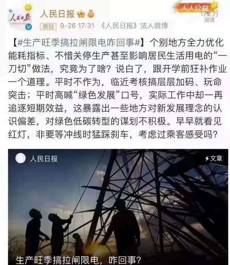 快考试了,临时抱佛脚,连夜不计代价的狂补作业;红灯早就看到了,等到快碰线时才猛踩刹车,这真的合适吗?拉闸限电不止影响生产,还影响到了百姓生活。