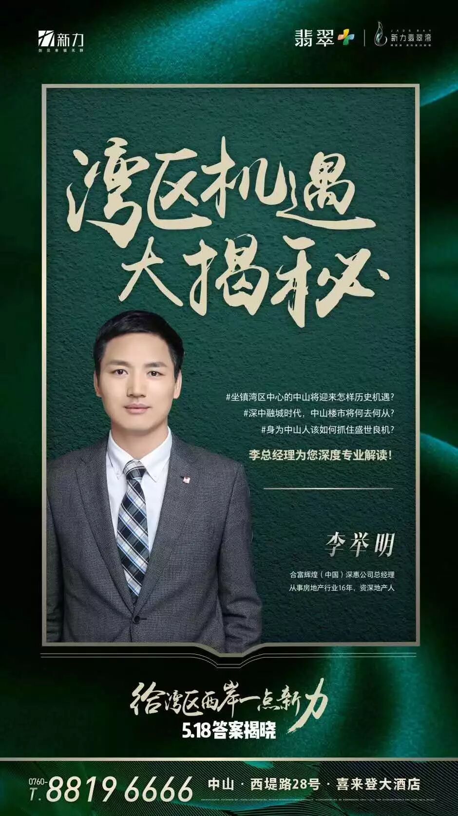 房叔温馨预告,项目将于5月18日举办“给湾区西岸一点新力”【翡翠+】产品发布会。