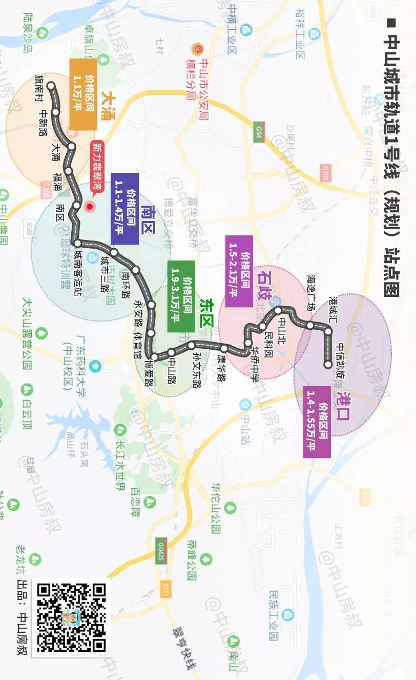 ▲中山城市轨道1号线(规划)站点